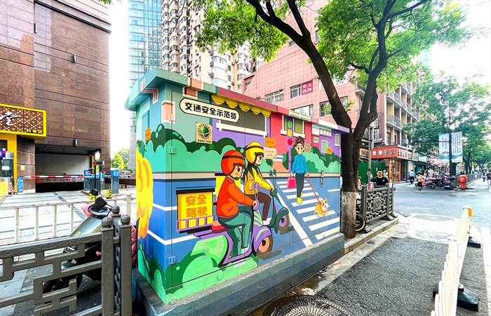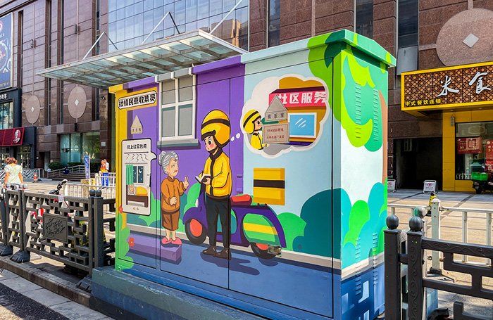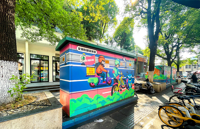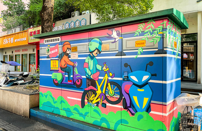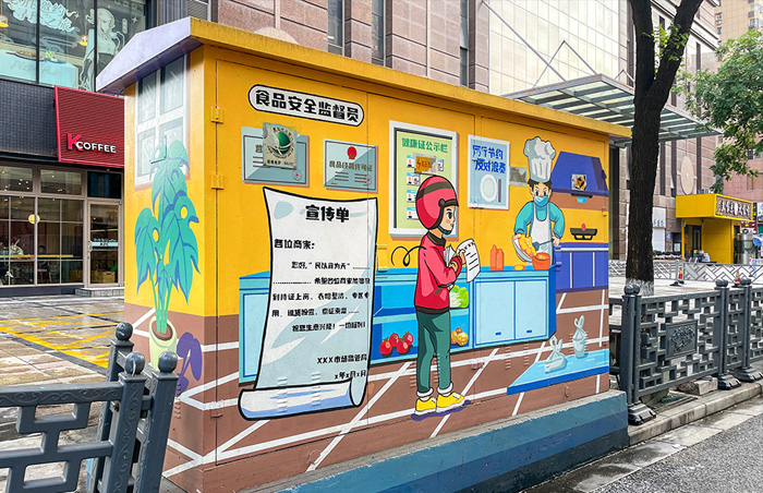 铁皮电箱上画画,要注意材料的选择,这样画面才能保持的更久。