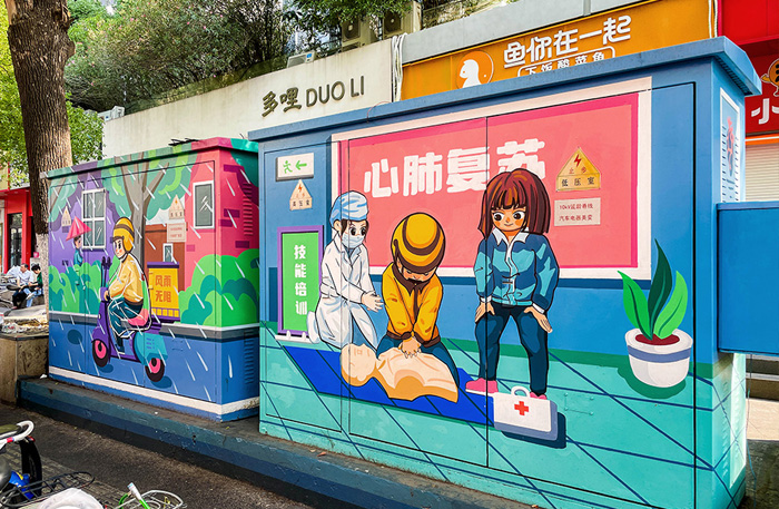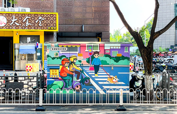 这次,我们受邀在南京“网红”的街区科巷,参与打造主题彩绘长廊,以“谢谢你的风雨无阻”为主题,通过电箱彩绘,既美化了街道,也让更多人知道宁小蜂的故事。
