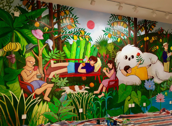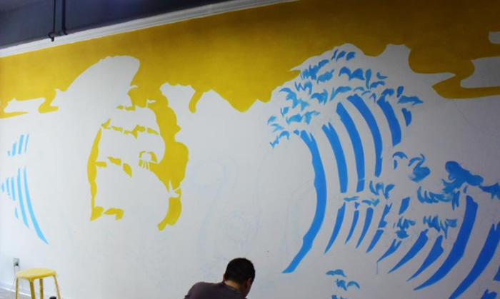 第六步就是维护了!在上述步骤完成之后,一幅墙绘作品就展示在我们的眼前,维护就是要给作品经常通风,起到干燥的作用,如果有脏污产生,可以用湿毛巾擦拭!