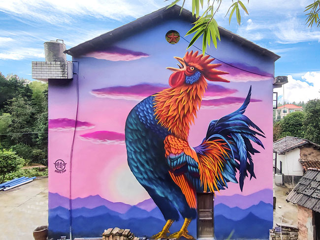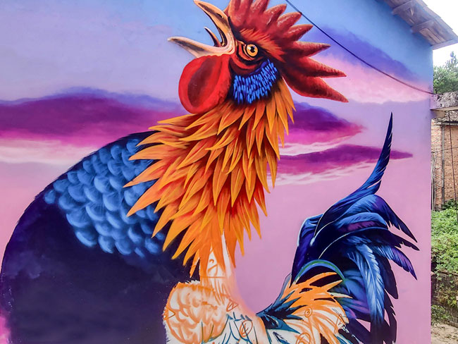「美丽乡村墙绘」金鸡报晓