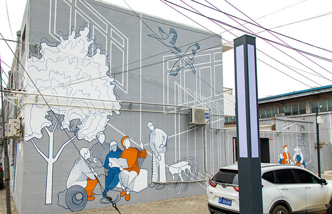 2017年中央决定设立国家级新区河北雄安新区。这么多年来,新区高质量建设稳步开展。罗萨大街是雄安新区管委会所在地容城县的主要街区,这是我们在雄安罗萨大街的彩绘项目之一。